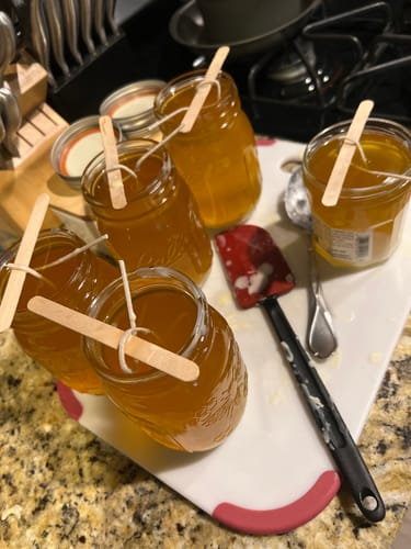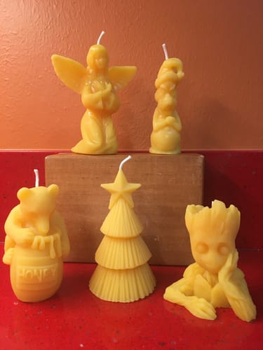 The #1 thing our customers use our beeswax for is candle-making. Our wax burns well, has great color, and is non-toxic. It's also easy to work and carefully filtered, perfect for taper candles, pillar candles, and more. Check out these candles our customers have made with this beeswax!